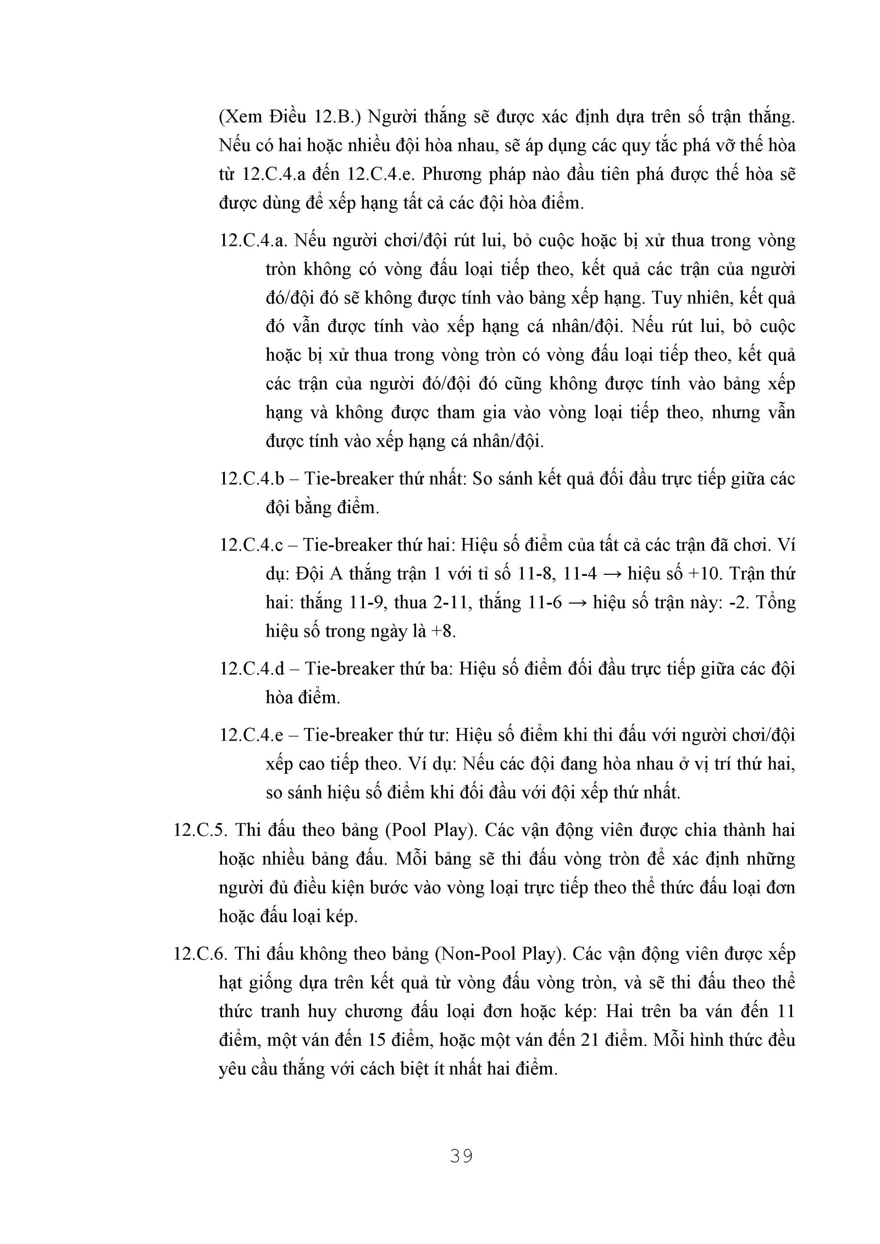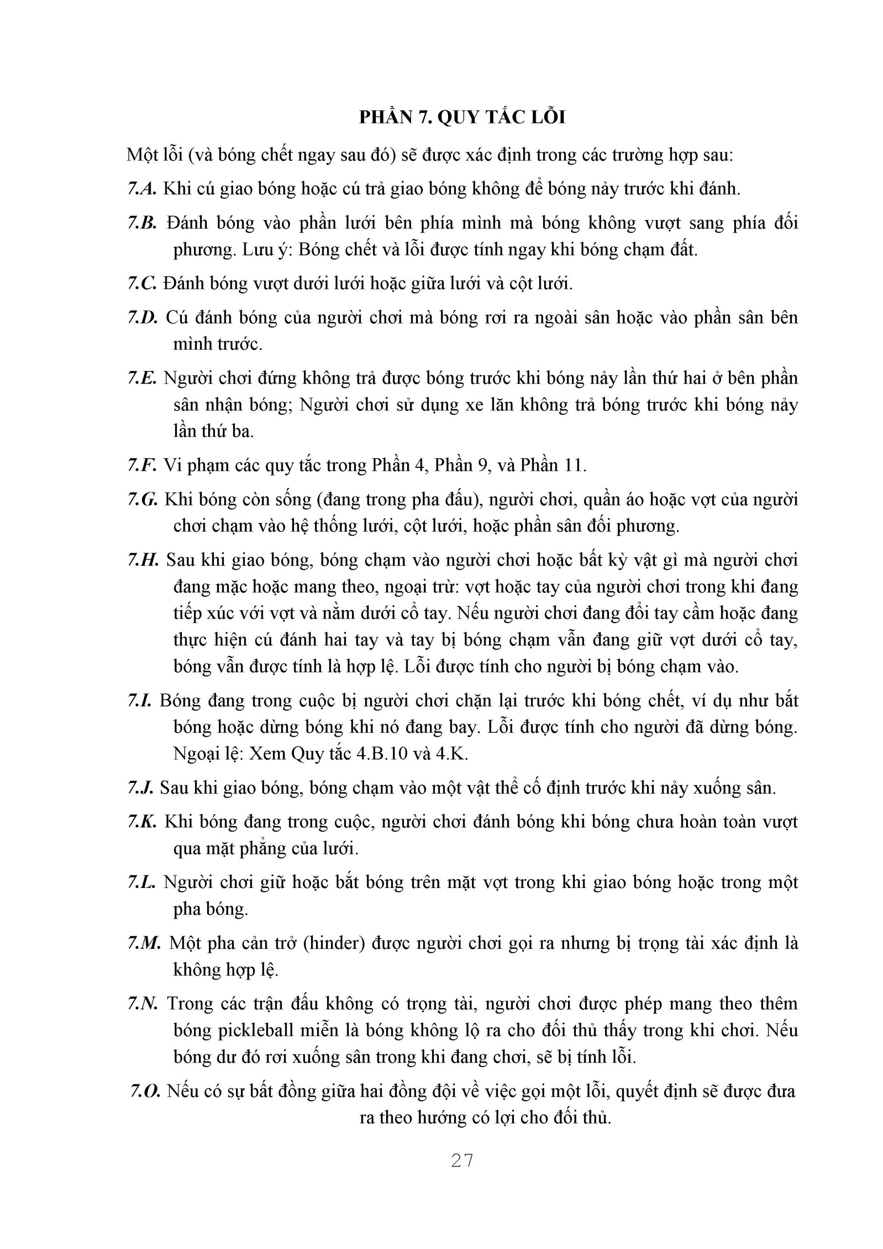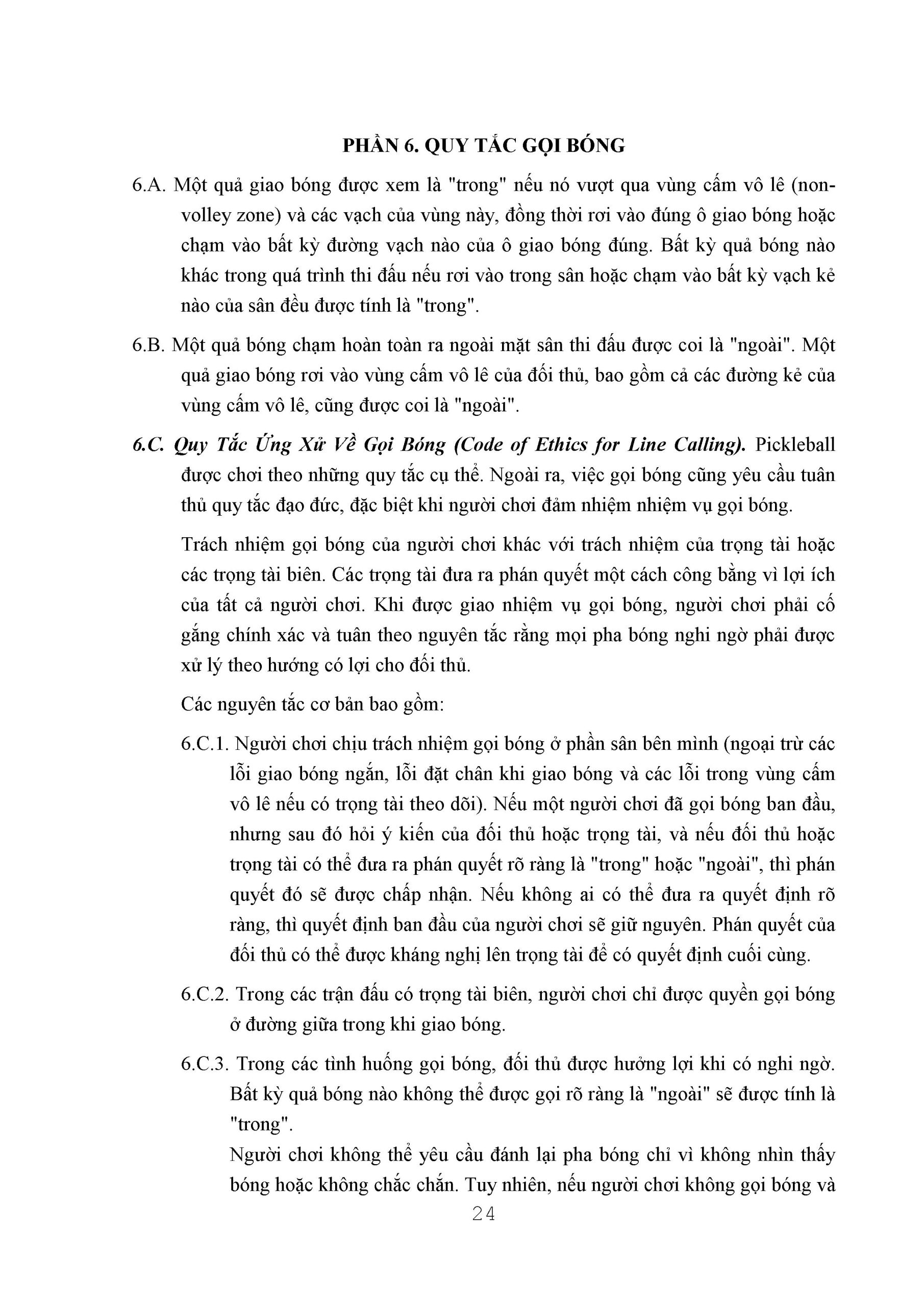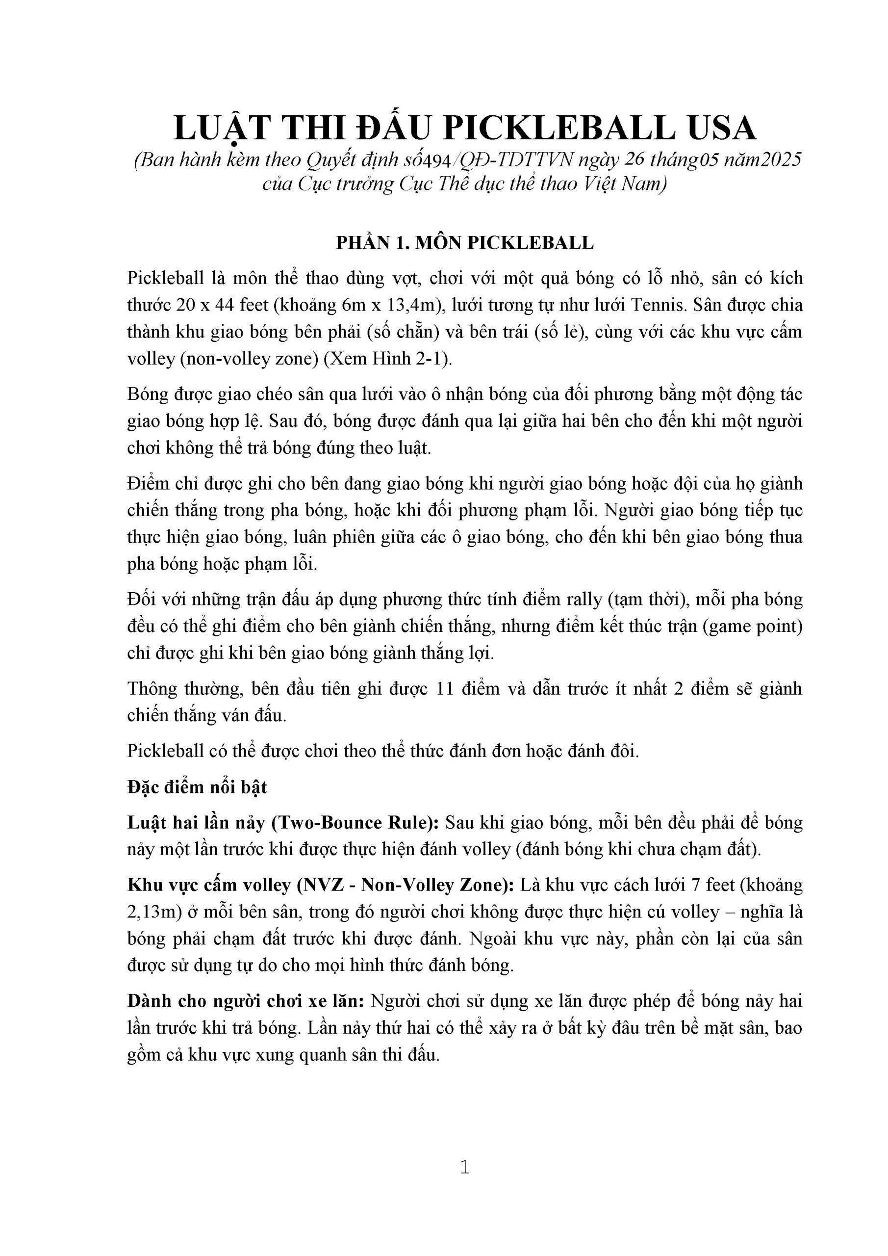 Luật thi đấu Pickleball USA tại Việt Nam do cục TDTT số 494/QĐ/TTTVN ban hành ngày 26/5/2025.