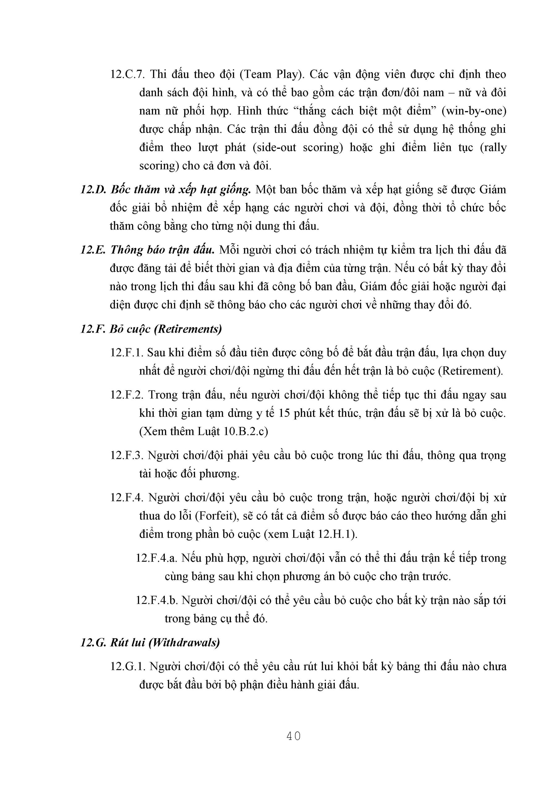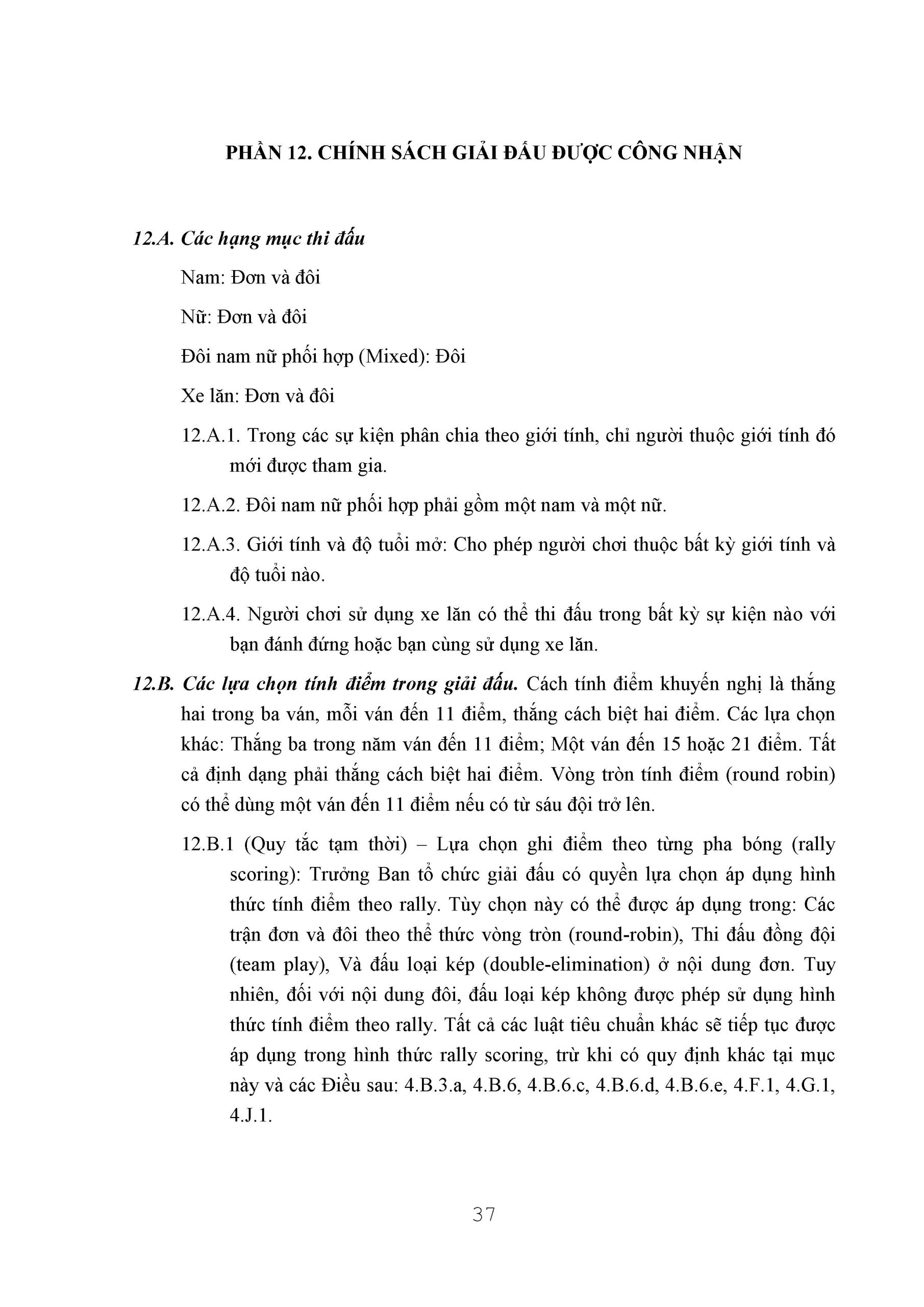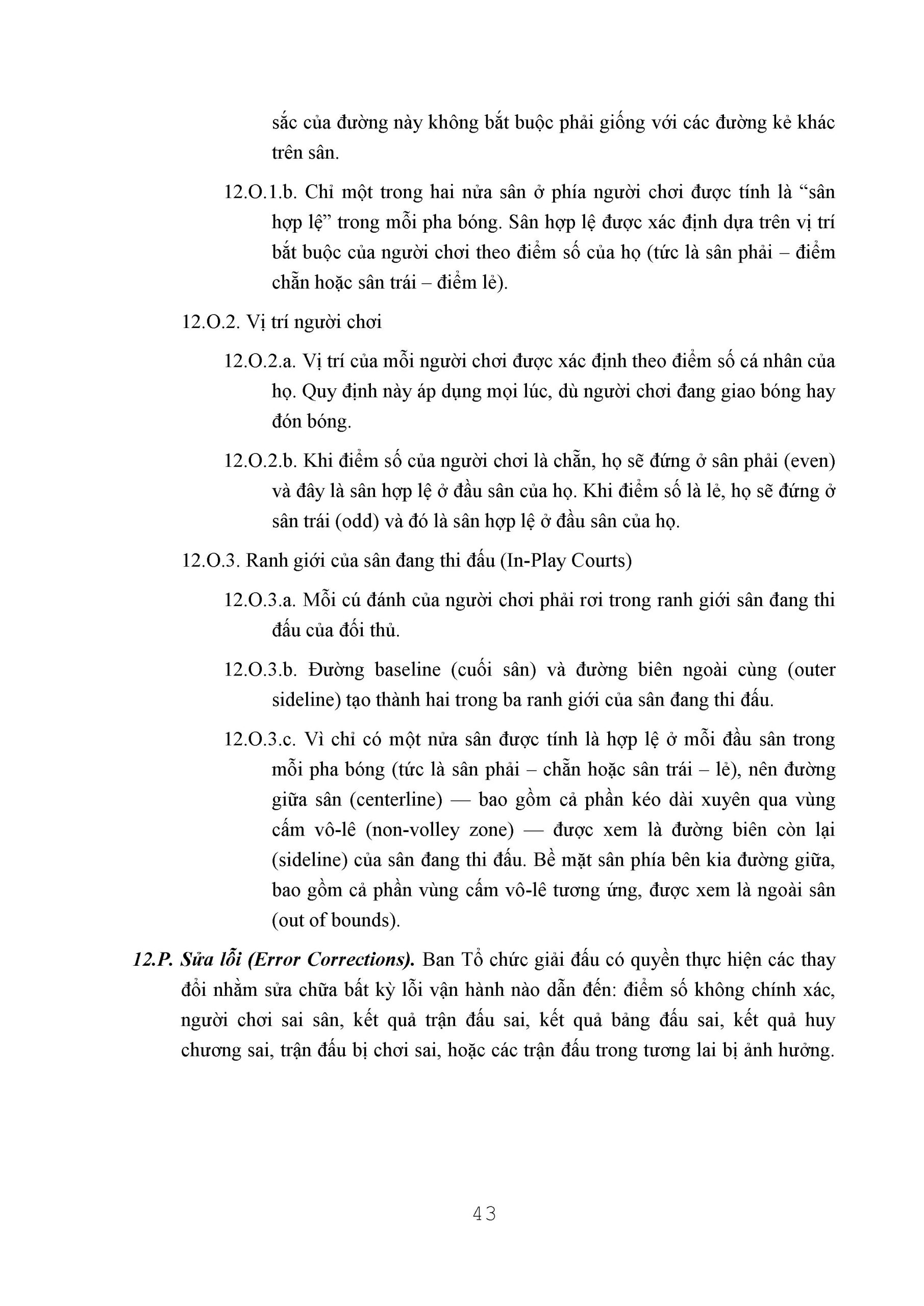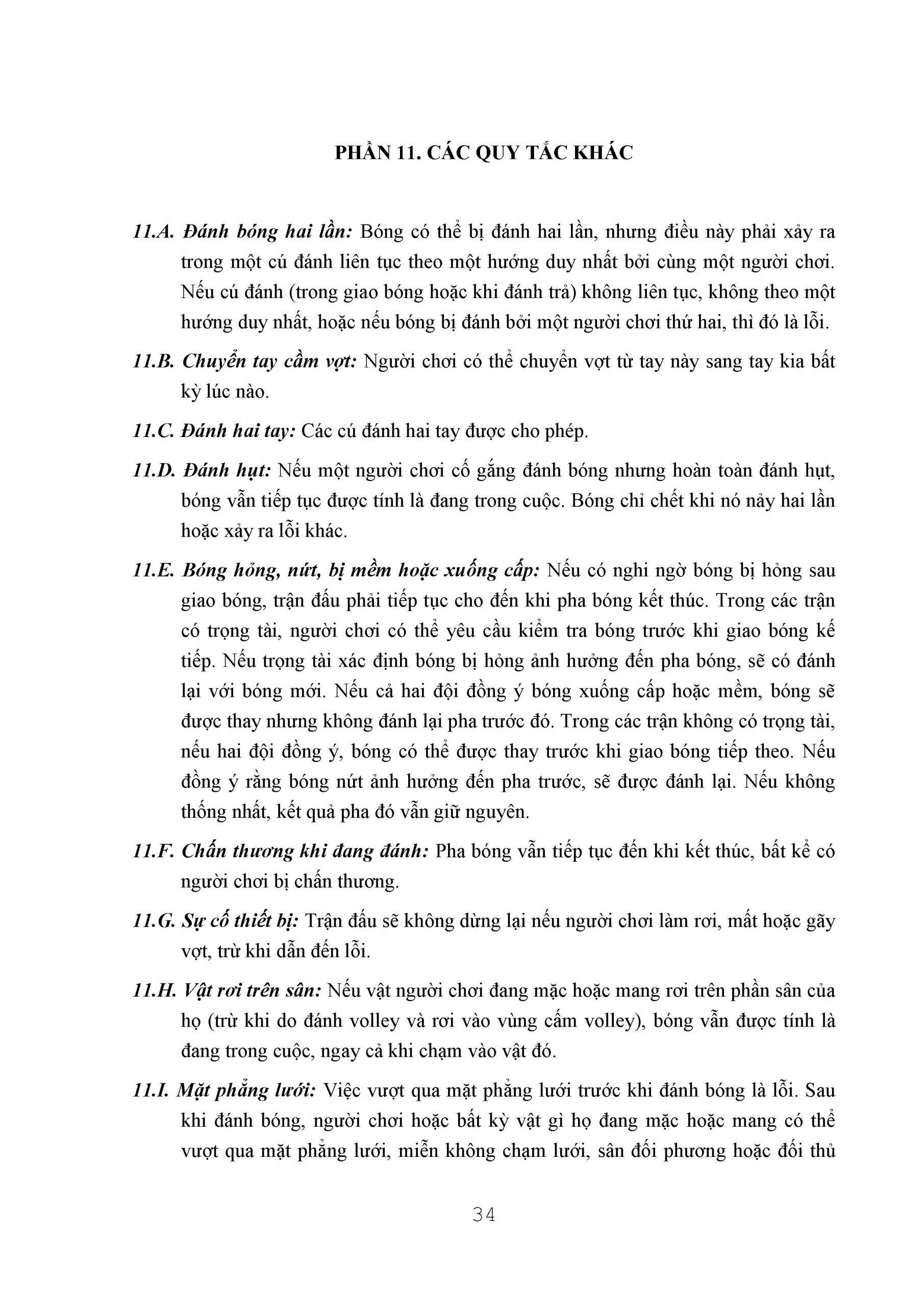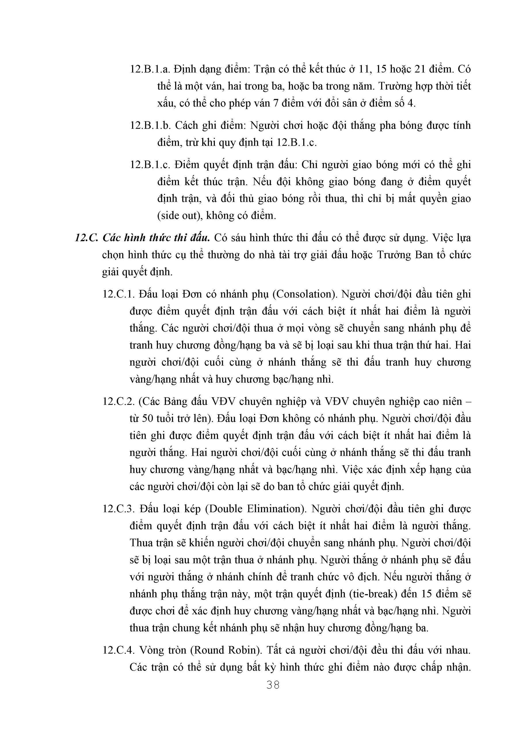 Luật thi đấu Pickleball USA tại Việt Nam do cục TDTT số 494/QĐ/TTTVN ban hành ngày 26/5/2025.